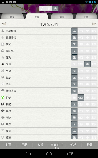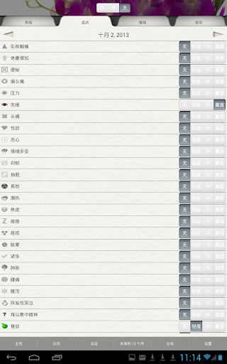 iPeriod 提供最强大的定制能力,超过 80 种症状以及 10 个免费主题!