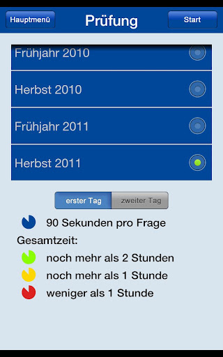 - Prüfungsmodus: Im Prüfungsmodus stehen wie im Examen 4 Stunden pro Prüfungstag zur Verfügung. Du kannst alle enthaltenen Examina unter realitätsnahen Bedingungen kreuzen.