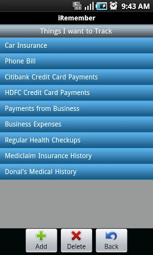 Remember activities and transactions easily. In this fast paced world remembering when, where, howmuch etc. of a past activity or transaction is bit difficult. iRemember helps you to note down such things easily in an organized way. Try it once and you will love it instantly.
