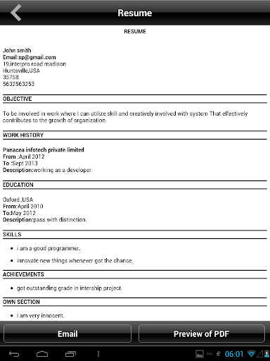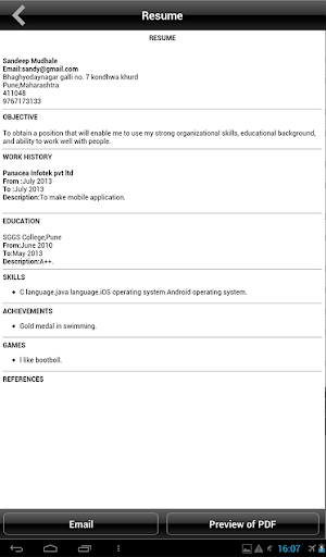 Below are the more features available with the iResumes app:-
