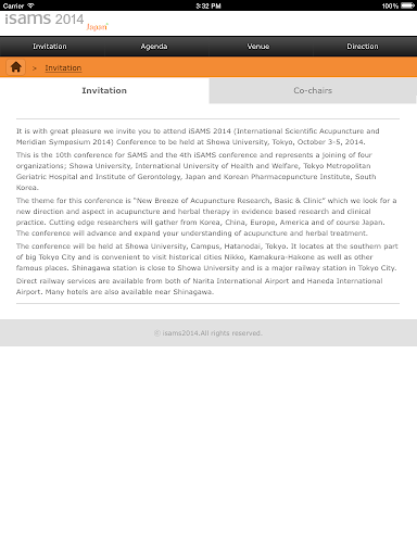 iSAMS App makes you access to the up-to-date information on the symposium. Once installed this app, you do not need any Wi-Fi or internet connections unless otherwise updating the newer version.