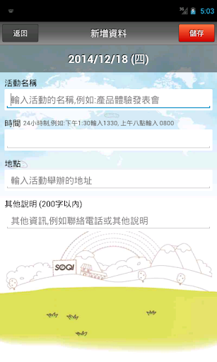 您也可以上傳您自己的活動並分享給您的夥伴。