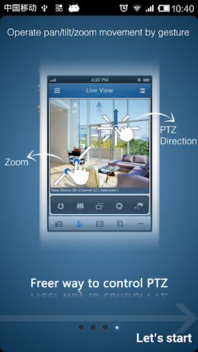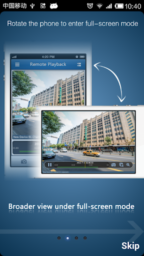 With this software installed in your mobile phone, you are able to log onto the front-end device via Wi-Fi, 2G or 3G; besides, if there is no public IP available for the device, it’s accessible by using a dynamic domain name, or by mapping ports to the public IP of router.