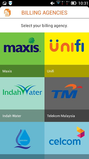iServe - Bill payment services: Maxis Communications Bhd, UNIFI (TM-Unifi), Indah Water Konsortium Sdn Bhd, Telekom Malaysia Berhad, Syarikat Bekalan Air Selangor Sdn Bhd, Celcom (Malaysia) Berhad, DiGi, Astro, Tenaga Nasional Berhad, TM - Streamyx and 1515, Umobile, YTL Communications (YES), P1 COM Sdn Bhd.
