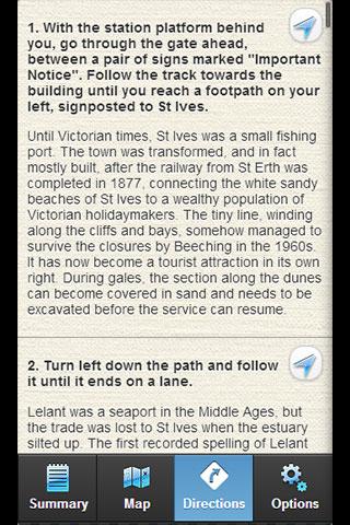 - Tracks your location using the GPS receiver on your phone or tablet, providing real-time information as you follow the walk route.