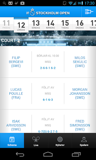 Ladda ner Stockholms hetaste tennisapp! Här hittar du alla viktiga fakta runt If Stockholm Open: spelschema, tider, resultat i realtid och fakta om alla spelare.