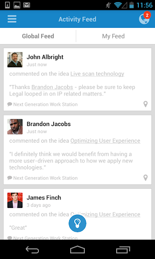 Users can quickly traverse between multiple WebStorms through the familiar Mobile interface and simple navigation menu with built-in access to all accounts, campaigns, ideas, and comments. With innov8 Mobile, users can view, post, comment, vote, and share ideas as well as use Brightidea's corporate micro-blogging feature called Tworker, that allows users to post and follow activity within their innovation community.