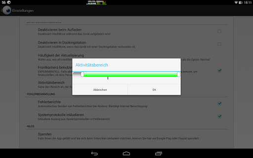It works by examining the angle in which the device is being used (or hold). If the device is within a specified range (configured via preferences) the screen will not go off, because intelliMove assumes the device is in use. intelliMove comes with predefined orientation ranges for different device types (e. g. tablet or smartphone) so that a range configuration is usually not necessary. intelliMove keeps the screen on when you need it!