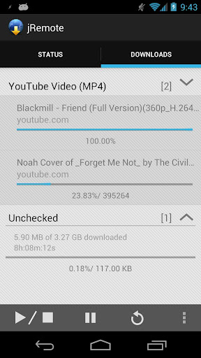 NOTE: This is a Remote control app, not a download manager. jDownloader (for PC or Mac), and it's plugin JD Remote Control are required to use this app.