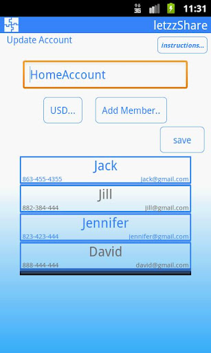 • Update the account details - add members, update their email id and phone number.