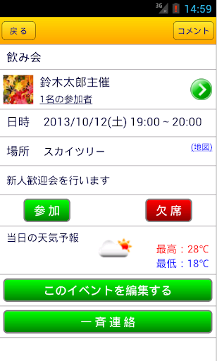 アプリ上でイベントと招待者を登録すれば、簡単に予定を共有することができます。
