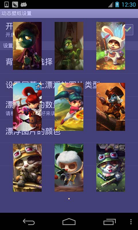 本应用为一款以火爆网游英雄联盟超萌英雄为主题的动态壁纸。画面唯美可爱,有着各种浪漫唯美的背景图片,以及可以自由选择漂浮在空中的萤火虫或者桃心等效果图片,还可以设置字体的样式和颜色,锁屏密码,锁屏界面的快捷方式等。赶快下载试试吧!