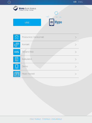 m-Hypo:-) is a Hypo Alpe-Adria-Bank mobile banking service, providing a range of banking benefits. Payments via mobile devices are simple, secure, quick, always available and cheaper than in branch banking. Among a number of functionalities you also get the Quick-pay service - bill payment via a mobile device camera, an overview of Hypo funds and stock markets.
