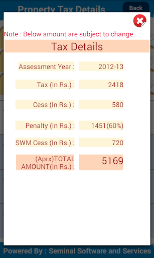 In Water Tax: This module illustrates your tap details and water demand, (arrears, penalty, if any) to be paid for this financial year.