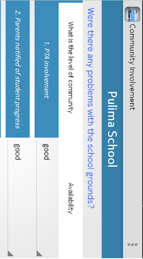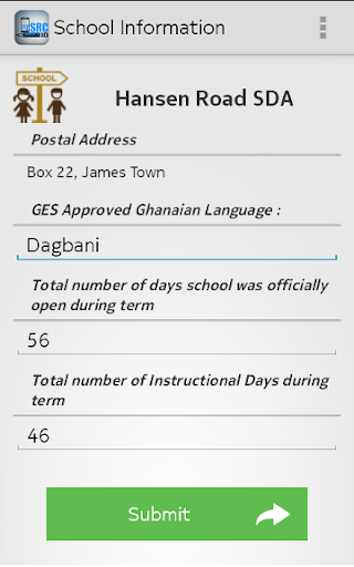 The mobile School Report Card (mSRC) application provides a process for collecting information on pupils, teachers, and management. This information is compiled by the school, and submitted to the District Education Office, to provide a database for analyzing the current situation at the school and across schools in the district. The mSRC system provides an opportunity for a school to submit information on itself, enabling stakeholders to access and situate schools’ performances within the district-wide context.