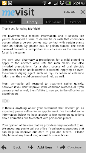 Manage minor acute or stable chronic disease with established patients – anytime/anywhere. Case turn-around less than 3 min. with intuitive, patent-pending technology --- pics, live voice/video option. Easy to use -- 97% pt. satisfaction.
