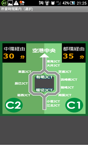 GPS機能を設定後、現在位置に応じた主要JCTから経路比較による所要時間情報が見れます。
