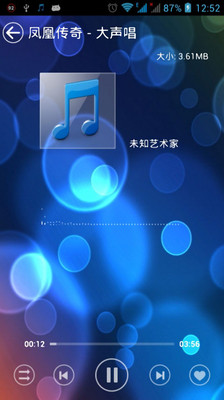 2:能够自动搜索并播放手机及SD卡中的多种音频文件,并支持后台播放