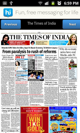 High Quality papers like Financial Express, Indian Express and i Next are included in the current version due to more feed back on quality of the image. As it is Flash content, it will be slower on loading, but after loading it will give clear contents.