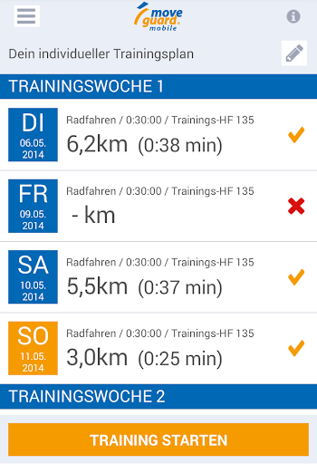 Du kannst sooft wie du willst den Trainingsplan neu erstellen. moveguard mobile zeigt dir wo du stehst und was du tun kannst. moveguard mobile motiviert und betreut dich und gibt dir ein auf dich zugeschnittenes Training.