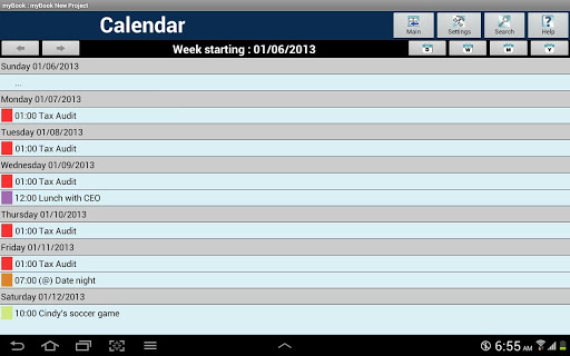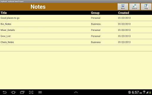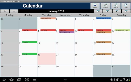 myBook is a personal organizer application targeted for the busy mobile tablet user to coordinate events, contacts, tasks and notes with ease. The myBook app conveniently groups these tools in one application to allow a user to maximize organization, interoperability and efficiency.