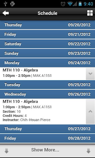 • Faculty Class List – Allows faculty to view classes and enrolled students for the current term.