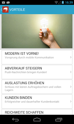 Mit diesem System lässt sich die eigene Unternehmens-App in wenigen Schritten über ein kinderleicht bedienbares, Internet-basiertes Befüllungssystem selbst konfigurieren und jederzeit aktualisieren. Mit der Push-Nachrichtenfunktion können attrative Angebote und Aktionen gezielt kommuniziert werden und so zur Abverkaufssteigerung beitragen, die Terminauslastung erhöhen usw.