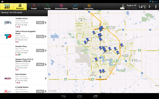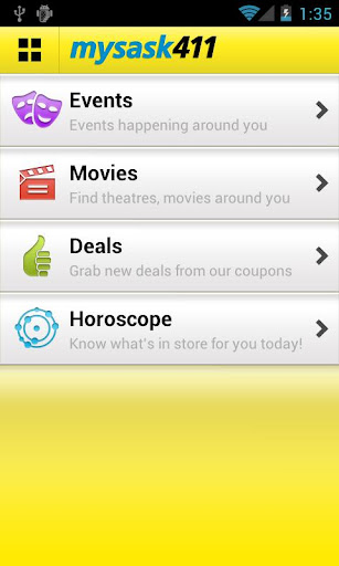 Rediscover local search with the mysask411 app. Now find everything Sask with the touch of a button - businesses, people, movies, events, coupons, deals, horoscopes, flight information, weather and more! Whether you are looking for a pizza, a pair of new shoes or a plumber, it has videos, photos, recommendations, products, services, brands, hours of operations and more to help you find exactly what you are looking for.