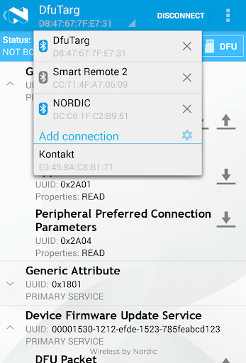 nRF Master Control Panel is a powerful generic tool that allows you to scan and explore your Bluetooth Smart (BLE) devices and communicate with them. MCP supports number of Bluetooth SIG adopted profiles including Device Firmware Update profile (DFU) from Nordic Semiconductors.