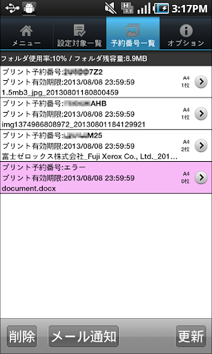 1) ファイルを登録(netprintアプリからの登録、メール送信による登録、他のアプリからnetprintアプリを呼び出して登録)。