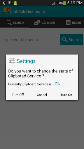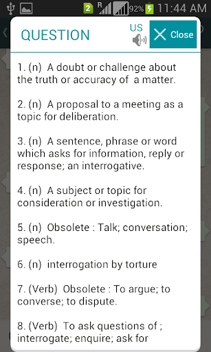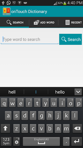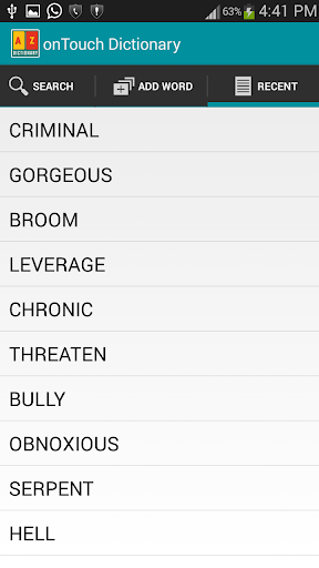 免費的離線OnTouch字典應用程序提供了英語單詞的定義/意思!但隨著搜索和從任何應用程序獲取單詞的意思,而無需打開主詞典應用程序的最新功能。