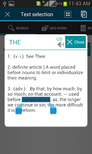 *獲取任何單詞瞬間的定義,簡單地選擇和複製的字,其含義/定義將不會從當前活動的應用逐漸遠離顯示。