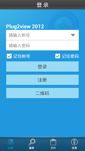 此为网络摄像机即插即用安卓客户端。用户输入账户信息后即可登陆互联网,观看设备实时录像。权限以内,可以进行远程控制。