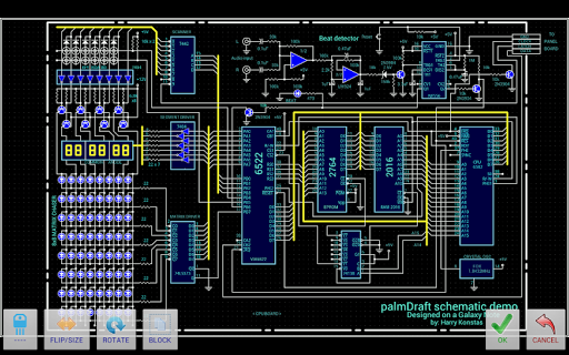 Originally designed for palm(tm) OS PDAs back in 2002, palmDraft is now available for the Android platform so you can easily design your own professional-looking electronic schematic diagrams on your Android tablet or phone.