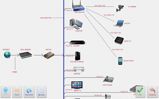 * Copy, delete, move, flip and rotate blocks, text and objects.