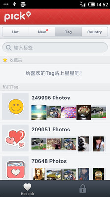 您可使用「pick」功能,将自己喜欢的照片,以及朋友的照片汇集成属于自己的相片列表。
