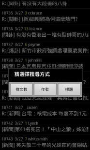 搜尋鍵及選單鍵可叫出搜尋文章對話框