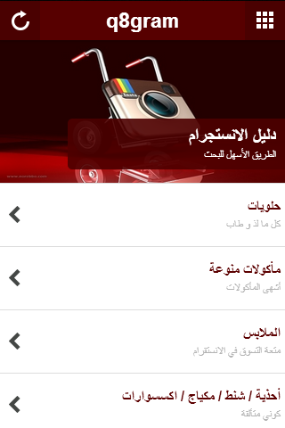 - دليل الانستجرام : يحتوي على قائمة بأهم الحسابات الكويتية التجارية الموجودة في برنامج الانستجرام بحيث يسهل على الجميع عملية البحث .