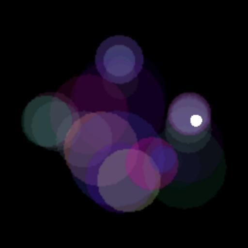 On the screen is a small white ball that moves in the direction you tilt the phone. Circles of color that depend upon the orientation and movement of the phone appear on the screen at the location of the ball. The radius changes depending upon which direction of the compass you point the phone.