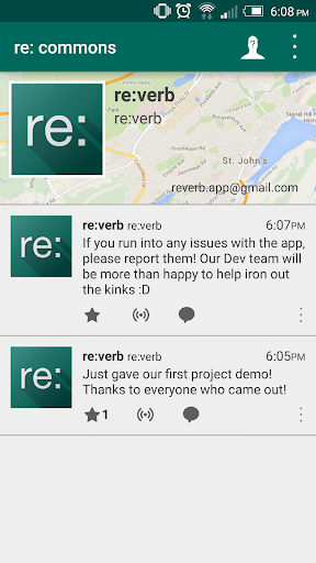 2. Outside of re:gions, when users post to the ‘commons’ their posts are tagged with the user's current location and are made visible to other app users within a certain radius.