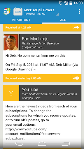 Stay connected to what's important - reqallable restricts incoming messages to just those from important contacts, and then distills the content to just the parts that require your attention.