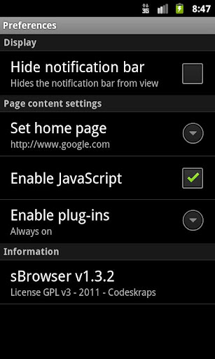 sBrowser is a simple browser for Android. Good for privacy (nothing is saved) and a build in video player.