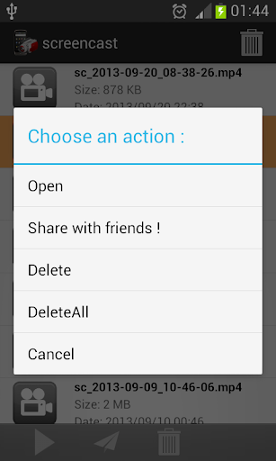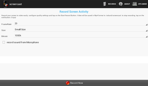 Screencast is a free screen recorder application. Record your screen into high quality video. Videos are saved as MP4 on your sdcard. Very usefull to create presentation or tutorials.
