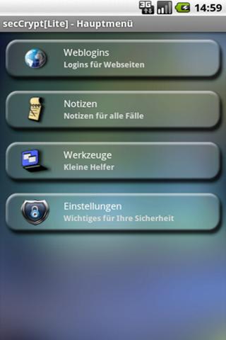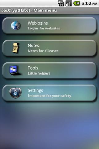 Manage and secure your passwords, weblogins, bankdata and notes encrypted on your android-phone.