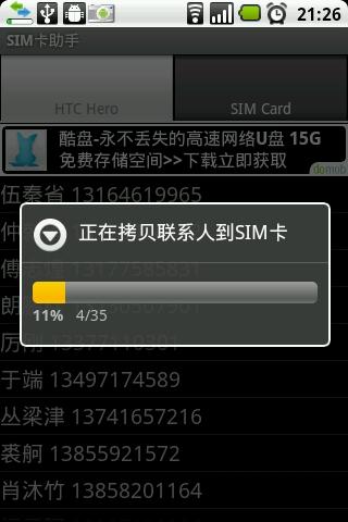 sim 联系人 手机 号码 电话 备份 导入 导出 Contact2Sim