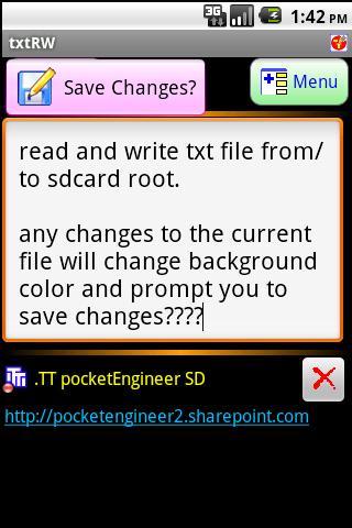 The simplest, no-brainer and yet practical text (.txt file) reader & writer on Android. For sure you won't have any trouble finding the files. txtRW automatically reads file from and writes file to SD Card root.