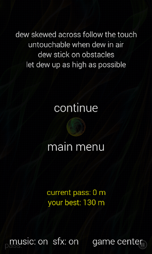 Game rules are simple, just touches on screen to navigation and pull the dew up as high as possible.