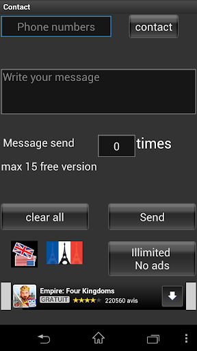 Attention cette application envoie des SMS pouvant être facturé selon votre forfait. Si vous êtes en illimité vous êtes limité à 250 contacts différent par mois.