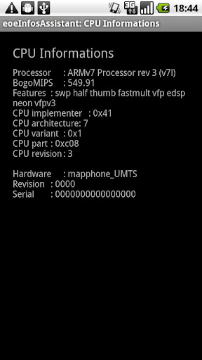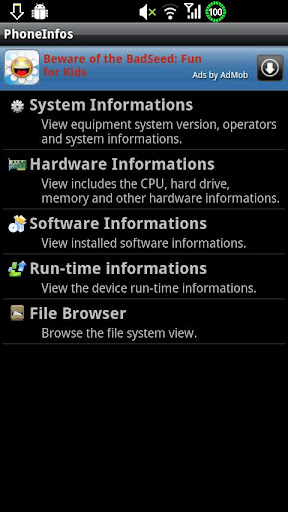 Show phone system infos. It includes systems, hardware,software,run-time informations.