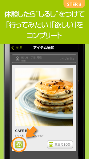 ・ 実際に行ったグルメ店、観光地などに”しるし”を付けられる機能